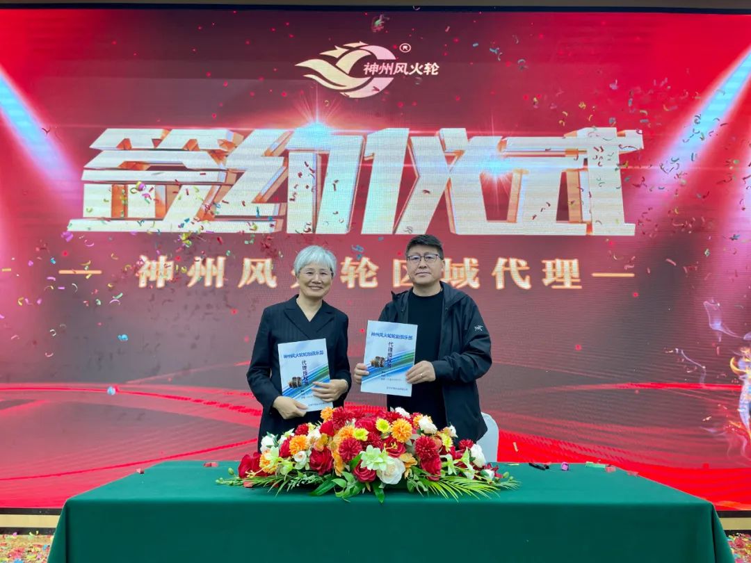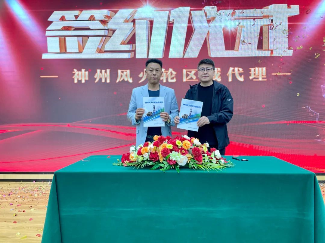 神州風(fēng)火輪為全國意向代理商提供了一次財富機遇,同時也進(jìn)一步布局全國市場。遼寧神州風(fēng)火輪輪胎科技有限公司戰(zhàn)略顧問崔邵焜先生代表公司與意向代理商進(jìn)行簽約儀式,本次招商會共有10位高瞻遠(yuǎn)矚的意向代理商完成簽約,成功鎖定11城,再次認(rèn)證了神州風(fēng)火輪的綜合實力和品牌影響力,這也是神州風(fēng)火輪未來發(fā)展的動力。獨行快,眾行遠(yuǎn)。神州風(fēng)火輪將與代理商在合作的道路上并肩前行,追求進(jìn)步,為代理商的發(fā)展壯大持續(xù)不斷地注入能量。