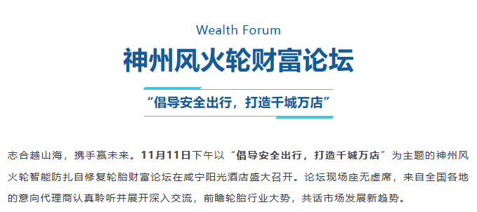 【盤錦站】“倡導安全出行,打造千城萬店”神州風火輪智能防扎自修復輪胎財富論壇