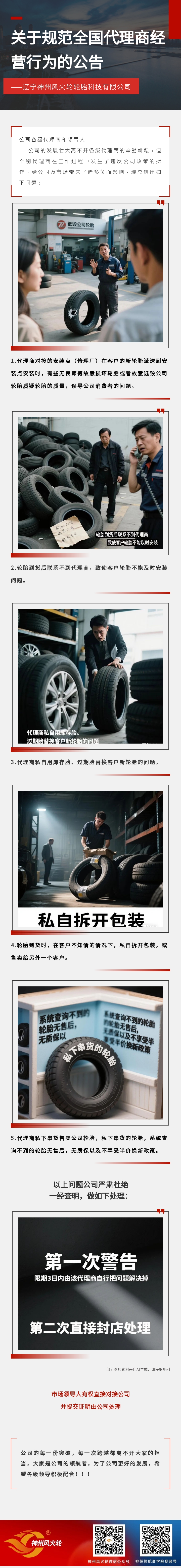神州風(fēng)火輪《關(guān)于規(guī)范全國代理商經(jīng)營行為的公告》